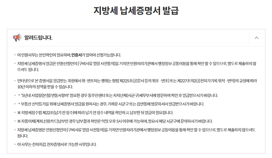 4. 지방세 납세증명서 민원사무 역시 인증 과정이 필요합니다.