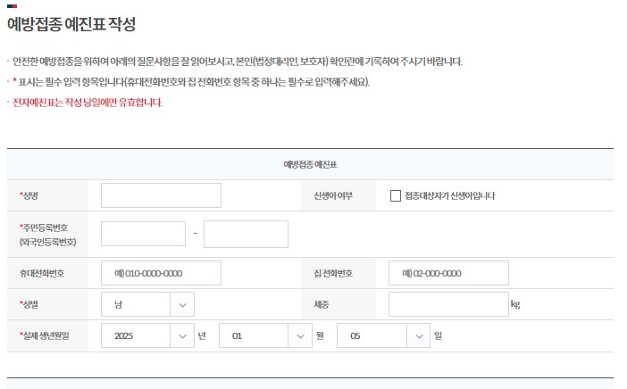 📌예방접종 도우미 전자예진표 작성하러가기!!↯↯