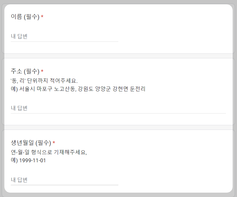 : YYYY-MM-DD 형식으로 기입 (예: 1995-08-21)