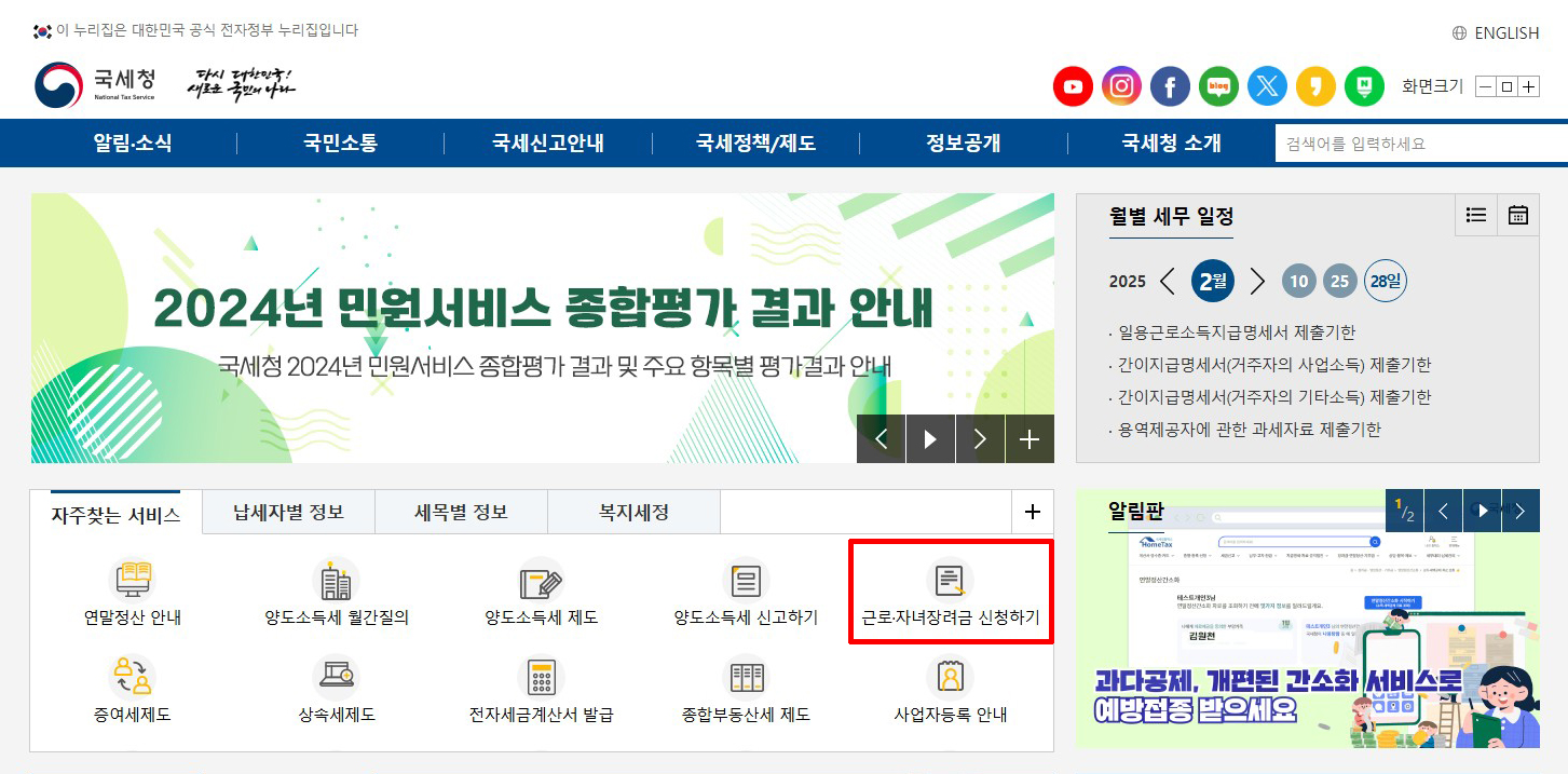 ② 홈택스 누리집 (국세청 홈택스) / 또는 손택스 앱(모바일) 할 수 있으며 결과 및 지급액은 홈택스에서 확인 가능