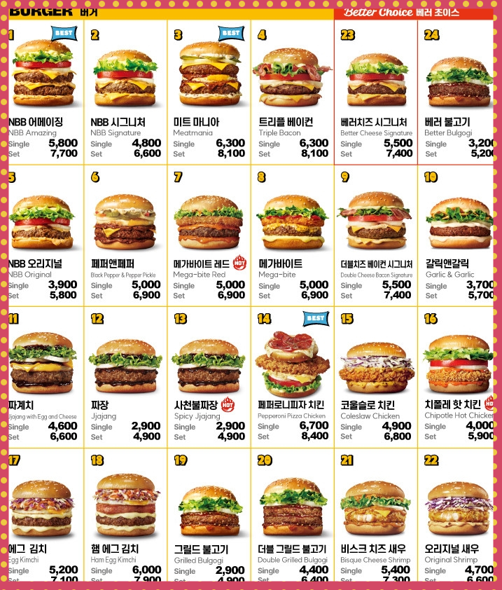 ✅ NBB 어메이징 버거 : 단품 5,600원 / 세트 7,500원