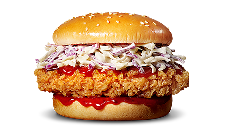 머스터드 소스+코울슬로가 느끼함을 잡아주어 뒷맛이 깔끔한 단짠맛나는 치킨버거! 치킨버거 마니아 에디터가 제일 좋아하는 메뉴예요. 남녀노소 가리지 않고 인기가 좋은 편이기도 하죠. 한 가지 단점이 있다면 코울슬로때문에 묽은 액체가 생긴다는 것..! 그래서 포장보다 매장 식사로 추천합니다.