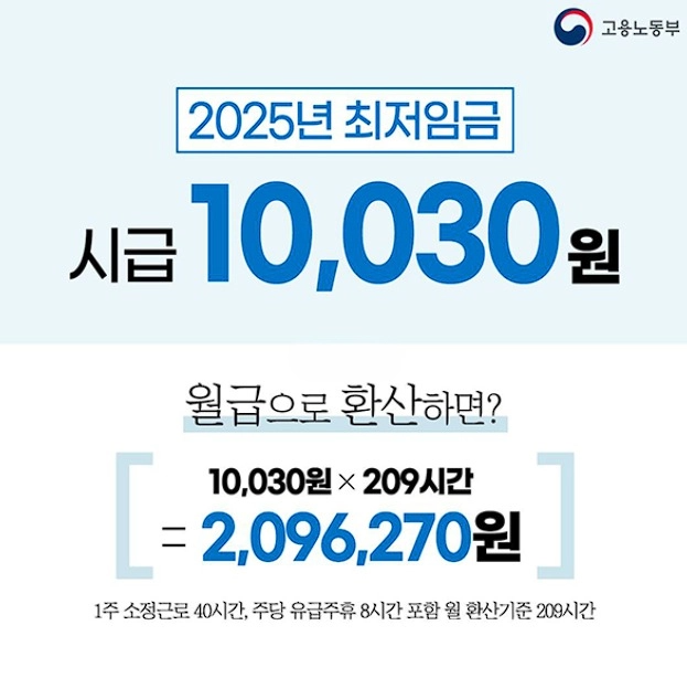임금 월급 연봉 주휴수당 등 2025년 최저임금이 시간당 10,030원으로 확정되면서 우리나라는 최저임금 1만원 시대를 맞이하게 되었습니다. 하지만 우려의 목소리도 분명히 있습니다. 자영업을 하고 계시는 소상공인분들에게는 큰 부담으로 걱정을 하시는 분들이 많습니다. 이번 2025년 최저시급의 경우 2024년 최저임금 9,860원에서 170원(1.7%) 인상된 금액으로, 근로자들의 기본적인 생활 수준 개선을 위한 중요한 변화라고 발표했는데요. 오늘 2025 최저임금 계산기, 주휴수당 등 자세히 알드려드리도록 하겠습니다.